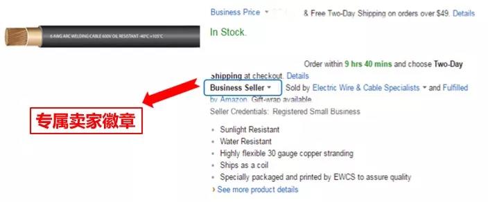 > 满足业绩和服务要求的卖家还将获得Amazon Business专属卖家徽章(如下图所示),用来提高企业信任度,让企业及 机构买家能迅速注意到你,并对你留下“高品质卖家”的好印象,之后的销售转化也就容易多了。