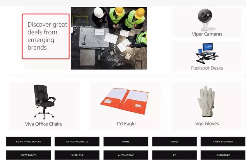 那么,此类促销活动能带来多少流量呢?先看一组今年4月至6月第一次亚洲特定商品促销活动的数据。当时,活动吸引了数百名卖家,以及数千款商品参加。在Amazon Business网站页面上,这项促销活动以“Discover great deals from emerging brands(从新兴品牌中发现新产品)”为标语(如下图所示),推出了一个“Side Banner”作为活动主入口。这条活动推广Banner及产品详情页的展示量高达数百万次,与往期“Back to Business”(Amazon Business主要促销活动之一)等其他Amazon Business的促销活动相当,真正实现了“高曝光”。