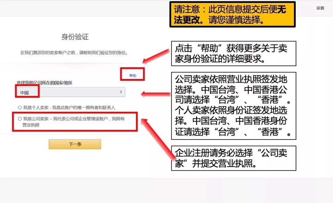 1. 选择公司所在国家及卖家类型